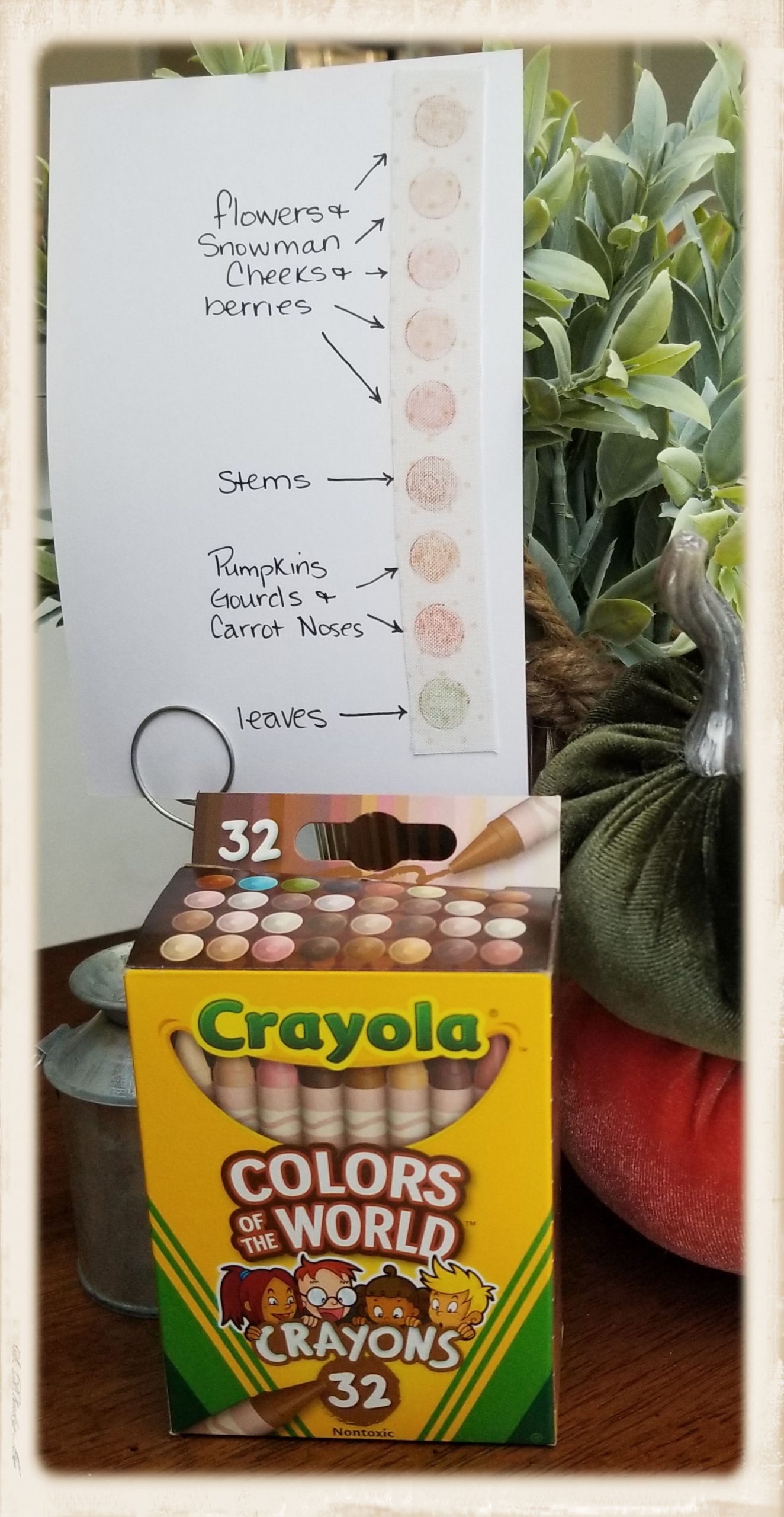 Crayons in flesh tones make lovely shading tools for flowers, berries. gourds, snowman cheeks, and leaves.