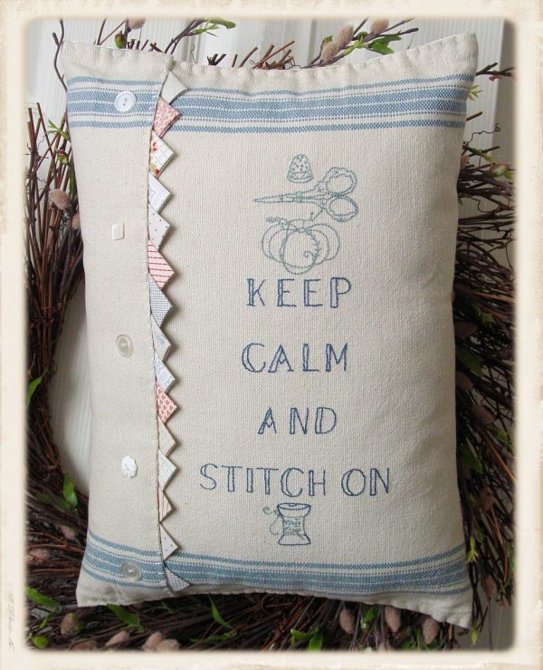 Keep calm and stitch on is my motto! This sweet pillow finishes up at 12 X 16.