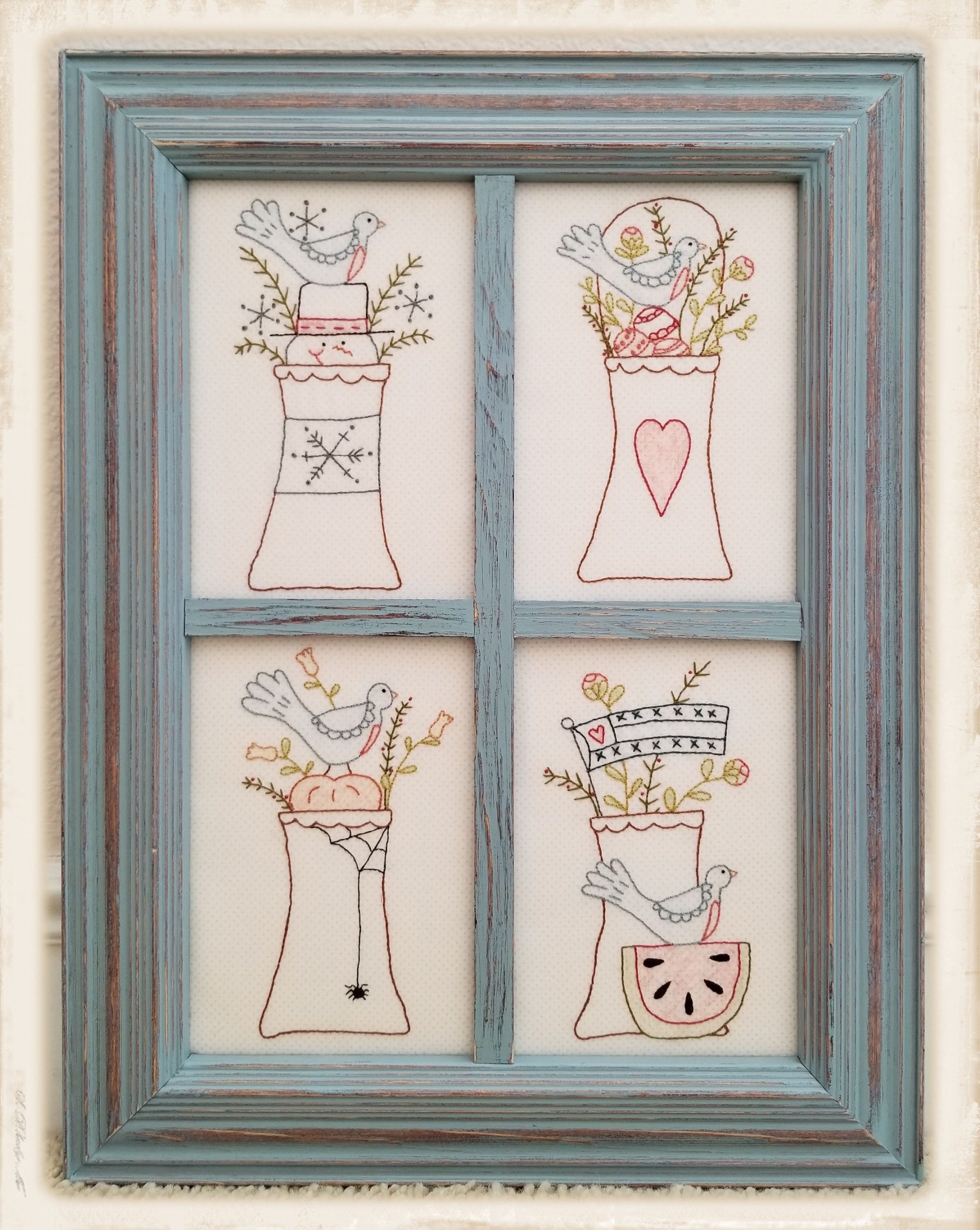 Four sweet stitcheries.  One for each delightful season!